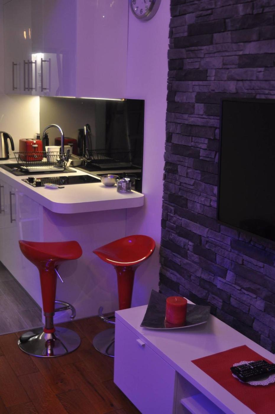 Apartament typu studio. Featuring a private entrance, this air-conditioned apartment comprises a kitchen, 1 bedroom and 1 bathroom with a shower and a hairdryer. In the fully equipped kitchen, guests will find a stovetop, a refrigerator, kitchenware and a microwave. The apartment provides a washing machine, soundproof walls, a seating area, a flat-screen TV with streaming services, as well as city views. The unit offers 1 bed. Apartament - 2 osobowy. Powierzchnia pokoju ok.: 23 mkw. ;