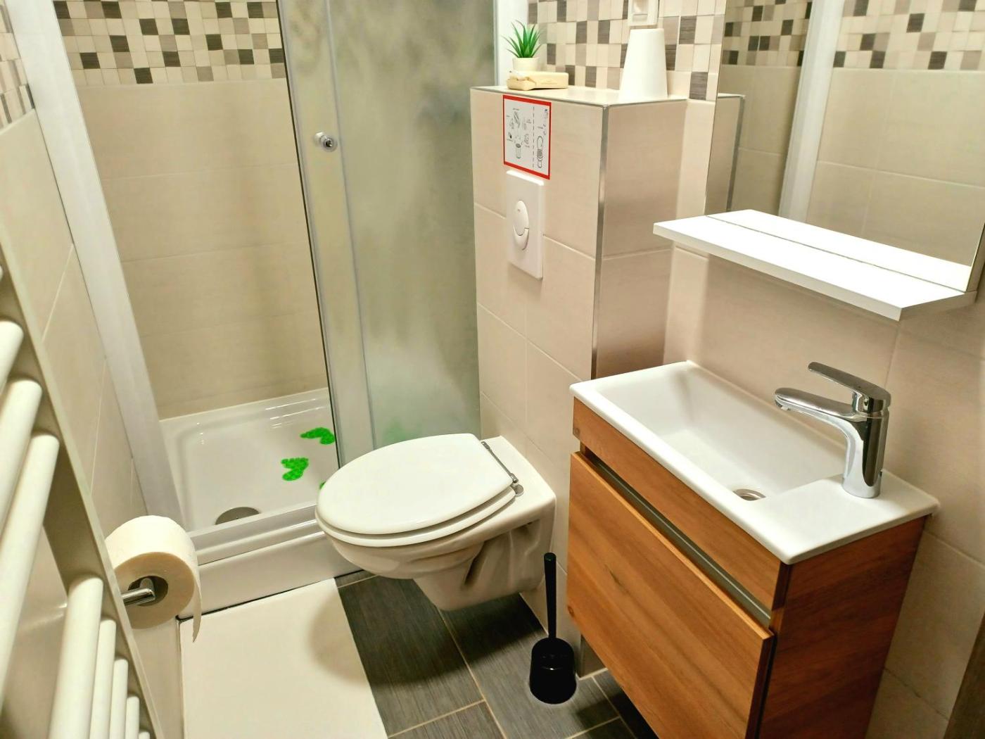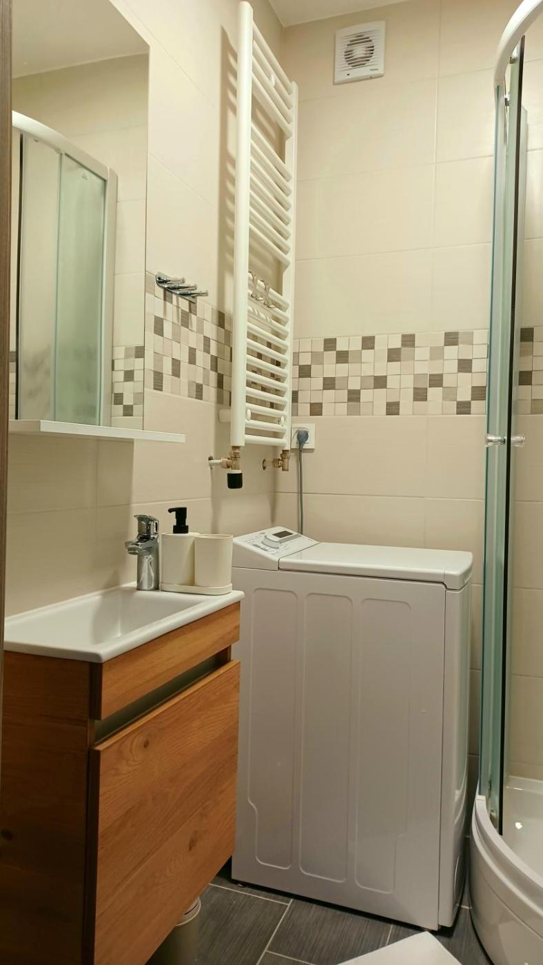 Studio z łóżkiem typu king-size i rozkładaną sofą. The studio offers a wardrobe, a sofa, as well as a private bathroom boasting a shower. Meals can be prepared in the well-fitted kitchen, which has a stovetop, a refrigerator, kitchenware and an electric kettle. The air-conditioned studio features a flat-screen TV, a washing machine, a private entrance, a dining area as well as a quiet street view. The unit has 1 bed. Studio - 1 osobowy. Powierzchnia pokoju ok.: 20 mkw.