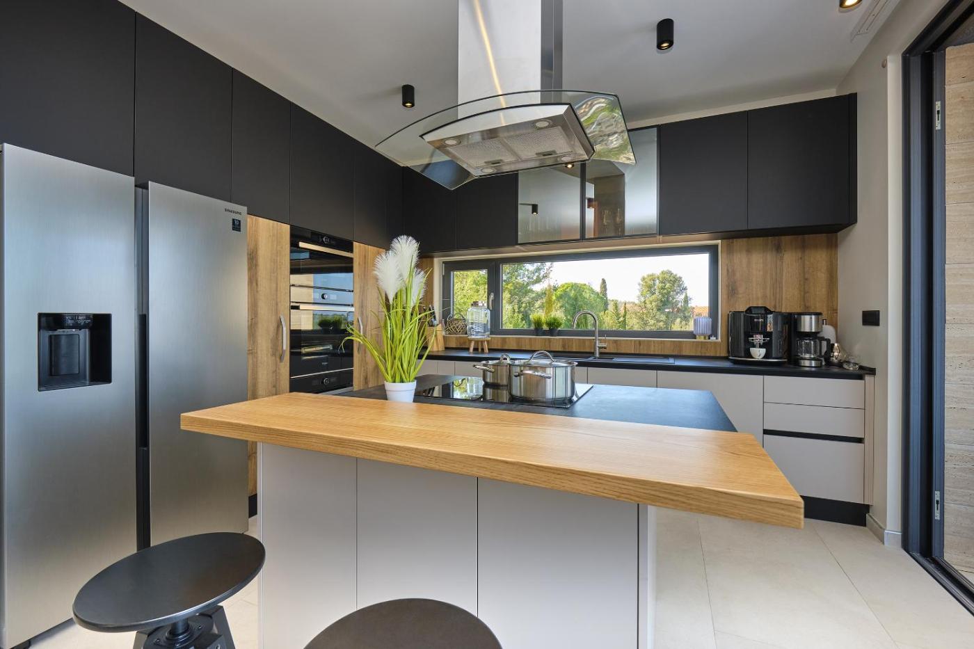 W willi zapewniono taras, kilka sypialni (6), salon z telewizorem z płaskim ekranem, kuchnię ze standardowym wyposażeniem, takim jak lodówka i zmywarka, a także kilka łazienek (7) z prysznicem. Goście mogą podziwiać widok na morze. W willi zapewniono ręczniki i pościel.